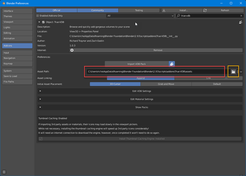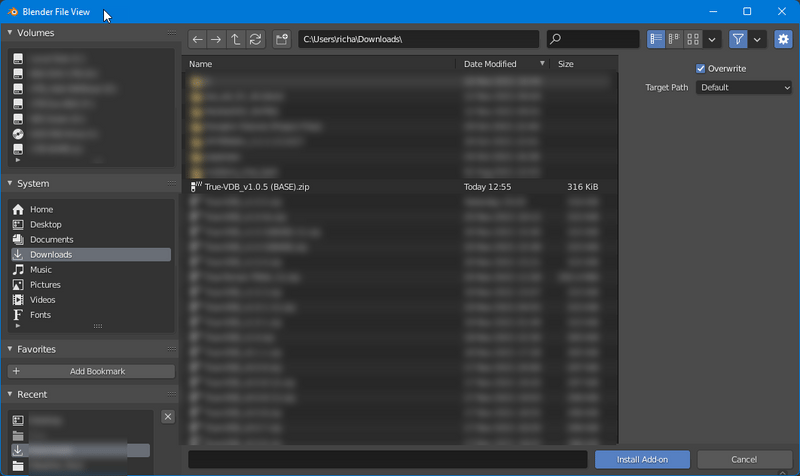 The addon will be enabled, and you will see a message and button appear (not shown) prompting you to install the 7zip engine within the addon. Click the button, and once the installation is complete, restart Blender.